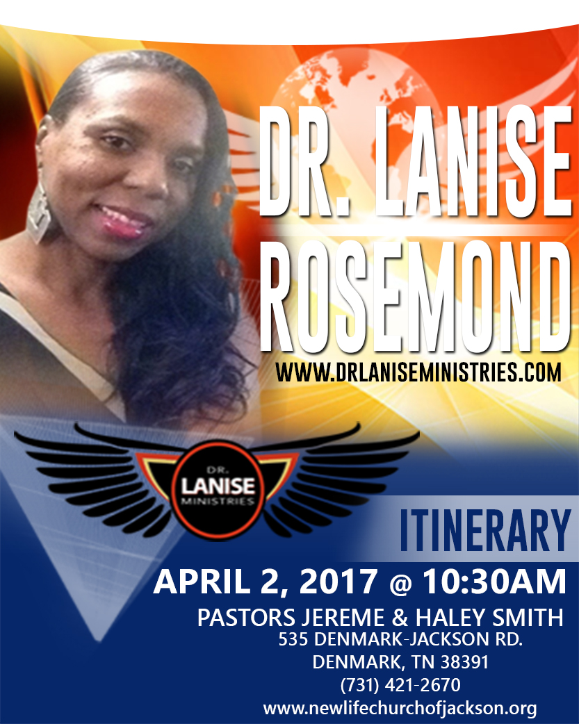 Dr. LaNise Rosemond @ New Life Church of Jackson Sun, April 2, 2017, 10:30 am UTC-5 New Life Church of Jackson 535 Denmark-Jackson Rd, Denmark, TN, United States